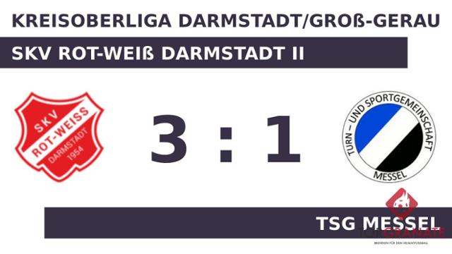 Kadir Caliskanoglu brachte sein Team in der 23. Minute nach vorn. Den Freudenjubel des SKV Rot-Weiß Darmstadt II machte Deniz Guellueoglu zunichte, als er kurz darauf den Ausgleich besorgte (28.). Patrick Schmitz stellte die Weichen für den SKV RW Darmstadt II auf Sieg, als er in Minute 31 mit dem 2:1 zur Stelle war. Ehe der Unparteiische Simon Wecht (Heppenheim (Bergstraße)) die Akteure zur Pause bat, erzielte Fynn Luke Kablitz aufseiten des SKV Rot-Weiß Darmstadt II das 3:1 (45.). Mit der Führung für den SKV RW Darmstadt II ging es in die Kabine. In der Halbzeit nahm die TSG Messel gleich zwei Wechsel vor. Fortan standen Eugene Cedric Ambang und Furkan Rencber für Marcel Fischer und Patrick Keim auf dem Platz. Am Ende heißt es: Ein Spiel mit zwei Halbzeiten von entgegengesetztem Unterhaltungswert. Während Durchgang eins von einem offenen Schlagabtausch geprägt war, fielen nach Wiederanpfiff keine Treffer mehr.