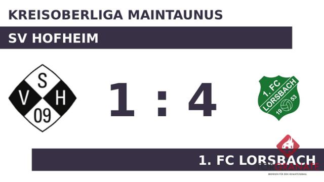 Der SV Hofheim geriet schon in der zehnten Minute in Rückstand, als Tolga Yilmaz das schnelle 1:0 für den 1. FC Lorsbach erzielte. Nach nur 27 Minuten verließ Dennis Pedde vom SV Hofheim das Feld, Meba-Solomon Karnapke kam in die Partie. Tomislav Grubisic schoss die Kugel zum 2:0 für den 1. FC Lorsbach über die Linie (34.). Es waren die Gäste, die zur Pause eine Führung ihr Eigen nannten. Nico Lindner brachte den 1. FC Lorsbach in ruhiges Fahrwasser, indem er das 3:0 erzielte (66.). Kevin Verkic baute den Vorsprung des Gasts in der 78. Minute aus. Der SV Hofheim kam kurz vor dem Ende durch Julian Becker zum Ehrentreffer (86.). Ein starker Auftritt ermöglichte dem 1. FC Lorsbach am Sonntag einen ungefährdeten Erfolg gegen den SV Hofheim.
