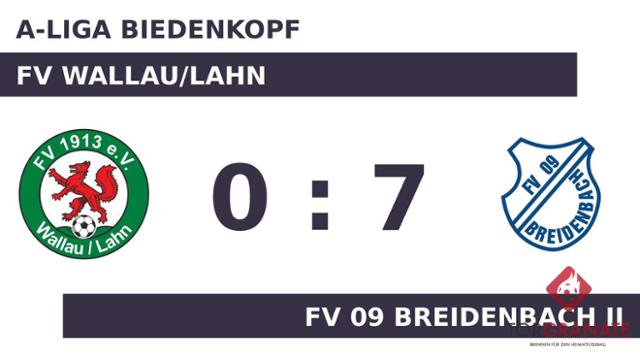 Kaum war das Spiel angepfiffen, lag der FV Breidenbach II bereits in Front. Kaan Akmese markierte in der dritten Minute die Führung. Jonas Schaefer trug sich in der 23. Spielminute in die Torschützenliste ein. Mit dem 3:0 durch Sallija Mergim schien die Partie bereits in der 25. Minute mit dem FV 09 Breidenbach II einen sicheren Sieger zu haben. Luis Müller legte in der 28. Minute zum 4:0 für die Gäste nach. Bis zur Pause hielt die Defensive des FV Wallau/Lahn dicht, sodass sich der Vorsprung des FV Breidenbach II nicht weiter vergrößerte. Wenig später kamen Gonzalo Daniel Cortes und Wladislaw Tschernucha per Doppelwechsel für Silas Stark und Akmese auf Seiten des FV 09 Breidenbach II ins Match (59.). Schaefer (62.), Tschernucha (71.) und Mergim (82.) bauten die komfortable Führung des FV Breidenbach II weiter aus. Am Ende fuhr der FV Breidenbach II einen deutlichen Sieg ein. Dabei demonstrierte der FV 09 Breidenbach II bereits in Hälfte eins großes Leistungsvermögen, als man den FV Wallau/Lahn in Grund und Boden spielte.