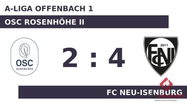 Antonio Geremias Bemcao brachte den OSC Rosenhöhe II in der zwölften Minute in Front. Nach nur 22 Minuten verließ Fotis Bantis vom Gastgeber das Feld, Bogdan Olteanu kam in die Partie. Zur Pause wusste der OSC Rosenhöhe II eine hauchdünne Führung auf der Habenseite. In Durchgang zwei lief Nicholas Erich Schön anstelle von Andrei Nikolae Ion für den OSC Rosenhöhe II auf. In der 48. Minute brachte Fardin Fagirzada den Ball im Netz des OSC Rosenhöhe II unter. Marius Potapczuk stellte die Weichen für den FC Neu-Isenburg auf Sieg, als er in Minute 50 mit dem 2:1 zur Stelle war. Florian Liedtko versenkte die Kugel zum 3:1 für die Gäste (65.). Durch einen von Sabatino Prevete verwandelten Elfmeter gelang dem OSC Rosenhöhe II in der 84. Minute der 2:3-Anschlusstreffer. Ehe der Abpfiff ertönte, war es Mark Gerhardt, der das 4:2 aus Sicht des FC Neu-Isenburg perfekt machte (90.). Schließlich strich der FC Neu-Isenburg die Optimalausbeute gegen den OSC Rosenhöhe II ein.