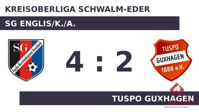 Auf die vermeintliche Siegerstraße brachte Lukas Gerhold sein Team in der 35. Minute. Die Führung hielt allerdings nur eine Minute. Ein Eigentor brachte den Ausgleich für die SG Englis/K./A. (36.). Zum Seitenwechsel hatte keine Mannschaft die Oberhand gewonnen. Unentschieden lautete der Zwischenstand. Anstelle von Tobias Reckhart war nach Wiederbeginn Marcel Brandt für die SG Englis/K./A. im Spiel. Andrej Lang stellte die Weichen für den Gastgeber auf Sieg, als er in Minute 55 mit dem 2:1 zur Stelle war. In der 65. Minute verwandelte Tim Kleinmann einen Elfmeter zum 3:1 für die SG Englis/K./A. Lang überwand den gegnerischen Schlussmann zum 4:1 für die SG Englis/K./A. (76.). Für das 2:4 der TuSpo Guxhagen zeichnete Julian Mager verantwortlich (88.). Am Ende verbuchte die SG Englis/K./A. gegen die Gäste einen Sieg.