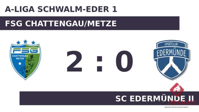 Die Gastgeber erwischten einen Blitzstart ins Spiel. Mario Armbröster traf in der dritten Minute zur frühen Führung. Für das 2:0 der FSG Chattengau/Metze zeichnete Kevin Genilke verantwortlich (25.). Mit einem Wechsel – Tobias Grönke kam für Jannik Löber – startete der SC Edermünde II in Durchgang zwei. Der Schiedsrichter schickte schließlich beide Mannschaften ohne weitere Änderung am Spielstand in die Kabinen. Der Halbzeitstand von 2:0 war letztlich auch das Endergebnis. Damit hatte sich die FSG Chattengau/Metze bereits vor dem Pausenpfiff auf die Siegerstraße gebracht.