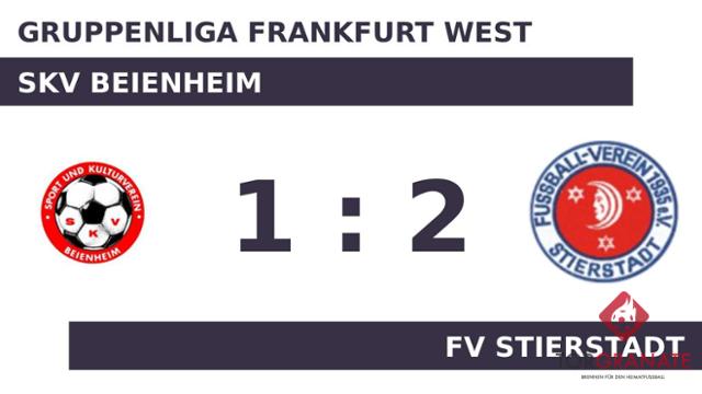 Tim Pelka witterte seine Chance und schoss den Ball zum 1:0 für den FV Stierstadt ein (23.). Zum Abpfiff der ersten Halbzeit hatte der FVS einen knappen Vorsprung herausgespielt. Wenig später kamen Cristian-Vasile Bodea und Darius Rienmueller per Doppelwechsel für Marius Bindewald und Denis Ehrlicher auf Seiten des SKV Beienheim ins Match (63.). Ab der 70. Minute bereicherte der für Karim Doering eingewechselte Salih Yasaroglu den SKV im Vorwärtsgang. Durch ein Eigentor des Sport- und Kulturverein verbesserte der FV Stierstadt den Spielstand auf 2:0 für sich (74.). Durch einen Elfmeter von Steffen Muenk kam der SKV Beienheim noch einmal ran (78.). Nach der Beendigung des Spiels durch Schiedsrichter Andreas Link (Rodgau) feierte der FV Stierstadt einen dreifachen Punktgewinn gegen den SKV Beienheim.