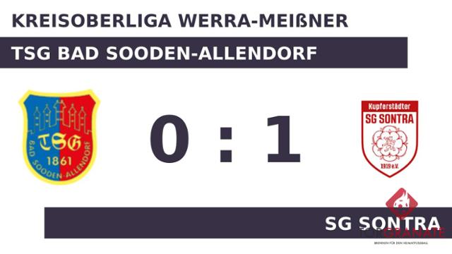 Die SG Sontra ging mit einem Elfmeter von Holger Dietel in Führung (45.). Letztendlich gelang es Sooden-Allendorf im Verlauf des Spiels nicht, sich von dem in der ersten Halbzeit erlittenen Rückstand zu erholen. Am Ende war die SG Sontra die Mannschaft, welche die drei Zähler einstrich.