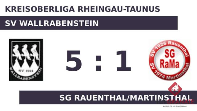 Jan Flemming brachte die Wallrabensteiner in der zwölften Minute nach vorn. Erdem Kadi war es, der in der 25. Minute den Ball im Tor des Rauenthal/Martinst. unterbrachte. Dennis Deider brachte das Wallrabenstein in ruhiges Fahrwasser, indem er das 3:0 erzielte (37.). Das überzeugende Auftreten des SVW fand Ausdruck in einer klaren Halbzeitführung. Bei der SG Rauenthal/Martinsthal kam zu Beginn der zweiten Hälfte Dominik Gudenkauf für Nico Wölke in die Partie. Dennis Faist verkürzte für das Rauenthal/Martinst. später in der 54. Minute auf 1:3. Timo Ott baute den Vorsprung des SV Wallrabenstein in der 72. Minute aus. Justin Reil gelang in den Schlussminuten noch ein weiterer Treffer für die Heimmannschaft (85.). Am Ende kam das Wallrabenstein gegen die SG Rauenthal/Martinsthal zu einem verdienten Sieg.