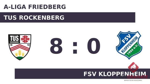 Mike Schmidt brachte den TuS Rockenberg in der zweiten Minute in Front. Der TuS Rockenberg machte weiter Druck und erhöhte den Spielstand im Eilschritt durch einen Treffer von Philipp Landvogt (6.). Mit dem 3:0 durch Pascal Sonnleitner schien die Partie bereits in der 21. Minute mit dem TuS Rockenberg einen sicheren Sieger zu haben. Schmidt überwand den gegnerischen Schlussmann zum 4:0 für den TuS Rockenberg (35.). Mit einer deutlichen Führung des TuS Rockenberg ging es in die Halbzeitpause. Dass es ein ungleiches Duell war, demonstrierten David Schwer (48.), Schmidt (59.) und Marius Wetz (70.), die weitere Treffer für den TuS Rockenberg folgen ließen. Wenig später kamen Simon Herold und Dennis Mix per Doppelwechsel für Marcel Welsch und Sonnleitner auf Seiten des TuS Rockenberg ins Match (72.). In der 78. Minute legte Schwer zum 8:0 zugunsten des TuS Rockenberg nach. Am Ende fuhr der TuS Rockenberg einen deutlichen Sieg ein. Dabei demonstrierte der TuS Rockenberg bereits in Hälfte eins großes Leistungsvermögen, als man den FSV Kloppenheim in Grund und Boden spielte.