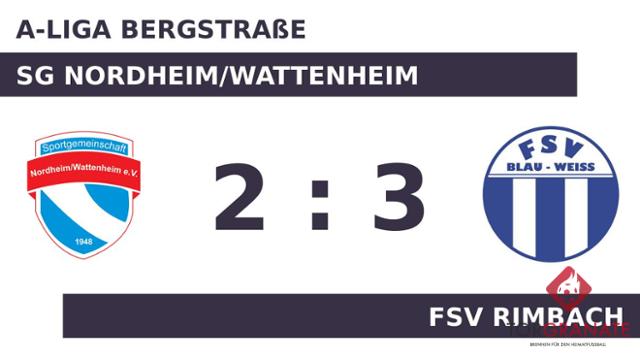 Colin Mitsch brachte das Nordheim/Wattenheim in der siebten Minute nach vorn. FSV Rimbach zeigte sich wenig beeindruckt. In der neunten Minute schlug Patrick Feller mit dem Ausgleich zurück. Das letzte Tor der turbulenten Startphase markierte Marc Bormuth in der 21. Minute. Die SG Nordheim/Wattenheim hatte zur Pause eine knappe Führung auf dem Zettel stehen. In der 60. Minute verwandelte Amir Duric einen Elfmeter zum 2:2 für FSV Rimbach. Gefeierter Mann des Spiels war Feller, der dem Gast mit seinem Treffer in der 87. Minute den Vorsprung brachte. Letzten Endes holte FSV Rimbach gegen das Nordheim/Wattenheim drei Zähler.