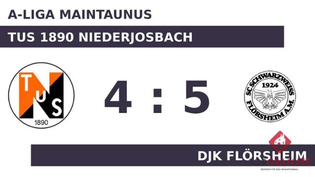 Brian Gericke versenkte den Ball in der 32. Minute im Netz des TuS Niederjosbach. Zum psychologisch wichtigen Zeitpunkt kurz vor der Halbzeit (44.) traf Robert Jetich zum Ausgleich für die Heimmannschaft. Ehe der Schiedsrichter Ingmar Schnurr (Wiesbaden) die Akteure zur Pause bat, erzielte Salvatore Picerno aufseiten der DJK Flörsheim das 2:1 (45.). Die Flörsheimer hatten zur Pause eine knappe Führung auf dem Zettel stehen. Nach rund einer Stunde ging der Gast aufs Ganze. Zunächst vergrößerte Oktay Demirarslan den Vorsprung des SC Schwarz-Weiß auf zwei Tore (55.). Wenig später erhöhte Picerno nochmals und sorgte damit für die Vorentscheidung (66.). Wenig später kamen Mohammed Hamida und Oezcan Oezkavas per Doppelwechsel für Eren Bahcetepe und Metin Erguel auf Seiten der DJK Flörsheim ins Match (68.). Für das 2:4 des TuS 1890 Niederjosbach zeichnete Pavel Yordanov verantwortlich (71.). Picerno überwand den gegnerischen Schlussmann zum 5:2 für die DJK Flörsheim (75.). Durchsetzungsstark zeigte sich der TuS Niederjosbach, als Yordanov (76.) und Carlos Graesner (77.) schnell nacheinander im gegnerischen Strafraum zuschlugen. Nachdem zunächst überhaupt nichts zusammengelaufen und der TuS 1890 Niederjosbach deutlich ins Hintertreffen geraten war, bäumte sich der TuS Niederjosbach noch einmal auf und betrieb immerhin noch Ergebniskosmetik.