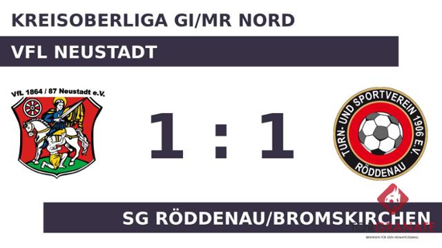 Nach den ersten 45 Minuten ging es für das Heimteam und Röddenau/B. ohne Torerfolg in die Kabinen. Niko Müller brach für den VfL Neustadt den Bann und markierte in der 60. Minute die Führung. Kurz vor Ende der Partie war es Albert Wider, der die SG Röddenau/Bromskirchen rettete und den Ausgleich markierte (89.). Am Ende trennten sich der VfL Neustadt und Röddenau/B. schiedlich-friedlich.