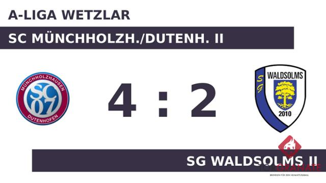 Auf die vermeintliche Siegerstraße brachte Dario Kurbasa sein Team in der neunten Minute. Waldemar Koch versenkte den Ball in der 16. Minute im Netz der SG Waldsolms II. Für das zweite Tor des SC Münchholzh./Dutenh. II war Lucian Kuca verantwortlich, der in der 26. Minute das 2:1 besorgte. Enis Sefic verwandelte in der 41. Minute einen Elfmeter und baute den Vorsprung des Gastgebers auf 3:1 aus. Mit der Führung für Münchh./Dutenh. II ging es in die Halbzeitpause. Der SC Münchholzh./Dutenh. II konnte mit dem ersten Durchgang sehr zufrieden sein. Trotzdem gab es Veränderungen bei Münchh./Dutenh. II. Martin Lowitzer ersetzte Oliver Birrenbach, der nun schon vorzeitig Feierabend machte. Ehe der Abpfiff ertönte, war es Koch, der das 4:2 aus Sicht des SC Münchholzh./Dutenh. II perfekt machte (90.). David Sluka war es, der in der 90. Minute den Ball im Tor von Münchh./Dutenh. II unterbrachte. Schlussendlich verbuchte der SC Münchholzh./Dutenh. II gegen die SG Waldsolms II einen überzeugenden Heimerfolg.