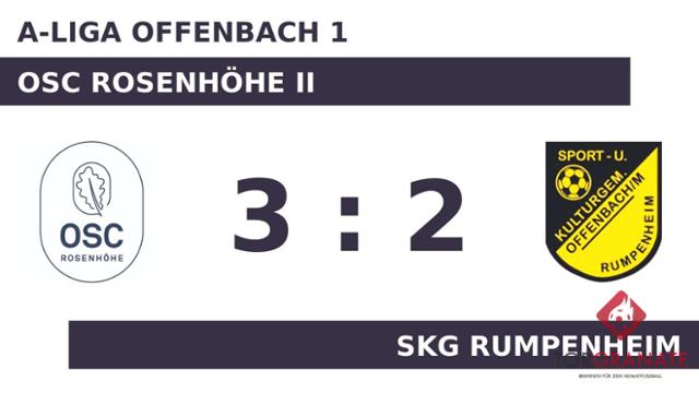 Der OSC Rosenhöhe II ging durch Luka Cosic in der 15. Minute in Führung. Antonio Geremias Bemcao machte in der 33. Minute das 2:0 der Heimmannschaft perfekt. Mit der Führung für den OSC Rosenhöhe II ging es in die Kabine. Andrei Nikolae Ion brachte den OSC Rosenhöhe II in ruhiges Fahrwasser, indem er das 3:0 erzielte (69.). Paul Dallwig beförderte das Leder zum 1:3 der SKG Rumpenheim über die Linie (87.). Kurz vor Ultimo war noch Ali Sarwari zur Stelle und zeichnete für das zweite Tor der Gäste verantwortlich (90.). Die SKG Rumpenheim steigerte sich nach desolatem Beginn im Laufe der Partie. Unterm Strich erwies sich der Rückstand jedoch als zu groß, als dass die SKG Rumpenheim etwas hätte mitnehmen können.