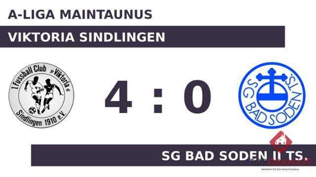 Alessandro Attardo brachte das Heimteam in der 32. Spielminute in Führung. Während einige mit ihren Gedanken bereits in der Pause waren, nutzte Shem Gaim seine Chance und schoss das 2:0 (42.) für die Viktoria Sindlingen. Mit der Führung für die Viktoria Sindlingen ging es in die Kabine. Lukas Hanschmann baute den Vorsprung der Viktoria Sindlingen in der 53. Minute aus. Das 4:0 für die Viktoria Sindlingen stellte Gaim sicher. In der 74. Minute traf er zum zweiten Mal während der Partie. Schlussendlich verbuchte die Viktoria Sindlingen gegen die SG Bad Soden II einen überzeugenden 4:0-Heimerfolg.