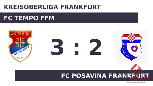 Der FC Tempo Ffm ging durch Goran Grijak in der zwölften Minute in Führung. Danijel Koturic war es, der in der 19. Minute den Ball im Gehäuse der Gastgeber unterbrachte. Zur Pause stand ein Unentschieden, und für beide Mannschaften war noch alles drin. In Durchgang zwei lief Boban Dokic anstelle von Nemanja Pantovic für den FC Tempo Ffm auf. Dokic ließ sich in der 54. Minute nicht zweimal bitten und verwertete zum 2:1 für den Tabellenprimus. Mato Djukic sicherte dem FC Posavina nach 65 Minuten den Ausgleich durch einen Elfmeter. Gefeierter Mann des Spiels war Dokic, der dem FC Tempo Ffm mit seinem Treffer in der 86. Minute den Vorsprung brachte. Am Schluss siegte der FC Tempo Ffm gegen den FC Posavina Frankfurt.