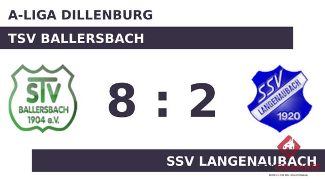 Kaum war das Spiel angepfiffen, lag der TSV Ballersbach bereits in Front. Tim Junker markierte in der fünften Minute die Führung. Die nächsten beiden Treffer waren einem Mann vorbehalten: Noah Levi schnürte einen Doppelpack (11./23.), sodass die Gastgeber fortan mit 3:0 führten. Für das 1:3 des Langenaubach zeichnete Israfil Tekin verantwortlich (25.). Mit dem Tor zum 4:1 steuerte Junker bereits seinen zweiten Treffer an diesem Tag bei (39.). Der tonangebende Stil des TSV Ballersbach spiegelte sich in einer klaren Pausenführung wider. Levi (52.) und Marvin Triesch (60.) brachten dem TSV Ballersbach mit zwei schnellen Treffern die Vorentscheidung. Tekin schoss für den SSV Langenaubach in der 67. Minute das zweite Tor. Mit zwei schnellen Treffern von Triesch (72.) und Mats Magnus Noethe (75.) machte der TSV Ballersbach deutlich, dass mit diesem Angriff jederzeit zu rechnen ist. Am Schluss schlug der TSV Ballersbach das Langenaubach vor eigenem Publikum mit 8:2 und rief dabei eine souveräne Leistung ab.