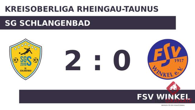 Nach den ersten 45 Minuten ging es für die SG Schlangenbad und den FSV Winkel ohne Torerfolg in die Kabinen. Beim FSV Winkel kam zu Beginn der zweiten Hälfte Anton Altlay für Daniel Zeleznik in die Partie. Dominik Pruha brach für die SG Schlangenbad den Bann und markierte in der 80. Minute die Führung. Ehe der Abpfiff ertönte, war es Grigol Bekoshvili, der das 2:0 aus Sicht der SG Schlangenbad perfekt machte (88.). Nach Beendigung der zweiten Halbzeit hieß das Ergebnis 2:0 zugunsten der SG Schlangenbad.