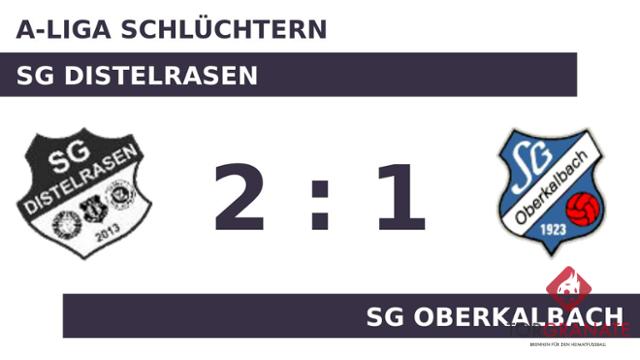 Luca Müller brachte die SG Distelrasen in der 32. Spielminute in Führung. Zur Pause behielt die SG die Nase knapp vorn. In der 54. Minute erzielte Leon Loeffert das 1:1 für die SG Oberkalbach. Eine Minute später ging die SG Distelrasen durch den zweiten Treffer von Müller in Führung. Am Schluss schlug die SG Distelrasen die SG Oberkalbach mit 2:1.