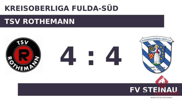 Kaum war das Spiel angepfiffen, lag der FV Steinau bereits in Front. Clirim Zhabari markierte in der vierten Minute die Führung. Witali Bese witterte seine Chance und schoss den Ball zum 1:1 für den TSV Rothemann ein (39.). Ausgerechnet zum psychologisch ungünstigen Zeitpunkt vor der Halbzeit traf Yannick Hohmann für den TSV zur Führung (45.). Die Rothemänner hatten zur Pause eine knappe Führung auf dem Zettel stehen. Für die Vorentscheidung waren Hohmann (46.) und Jonas Hilgenberg (53.) mit zwei schnellen Treffern verantwortlich. Ilker Dapar verkürzte für den FV Steinau später in der 71. Minute auf 3:4. Am Ende stand es zwischen dem TSV Rothemann und dem FV Steinau pari.