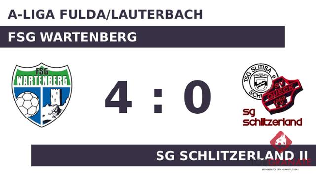 Die FSG ging durch Mohammad Zeitoun in der 30. Minute in Führung. Zum Abpfiff der ersten Halbzeit hatten die Wartenberger einen knappen Vorsprung herausgespielt. In der 55. Minute stellte die SG Schlitzerland II personell um: Per Doppelwechsel kamen Dennis Kreuz und Kevin Arent auf den Platz und ersetzten Daniel Strzalkowski und Max Semmler. In der 83. Minute erhöhte Wilhelm Liebelt auf 2:0 für die FSG Wartenberg. Für ruhige Verhältnisse sorgte Zeitoun, als er das 3:0 für den Gastgeber besorgte (87.). Moritz Möller vollendete zum vierten Tagestreffer in der 90. Spielminute. Am Ende kam die FSG Wartenberg gegen die SG Schlitzerland II zu einem verdienten Sieg.