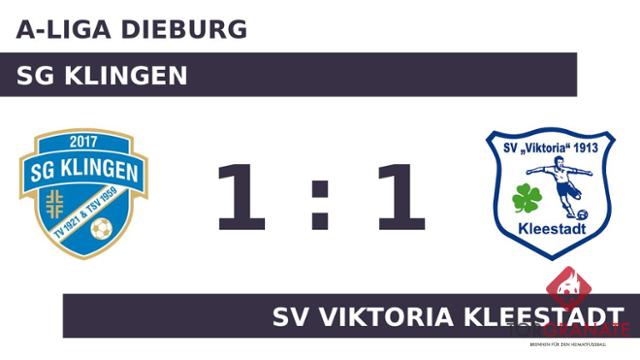 Die SG Klingen geriet schon in der siebten Minute in Rückstand, als Daniel Souto das schnelle 1:0 für den SV Vikt. Kleestadt erzielte. Stanislar Hubinsky nutzte die Chance für die SG Klingen und beförderte in der 30. Minute das Leder zum 1:1 ins Netz. Als Schiedsrichter Andre Engbrecht (Oberzent) das Spiel beendete, blieb der folgende Eindruck: Einen offenen Schlagabtausch lieferten sich beide Teams nach dem Seitenwechsel wahrlich nicht, sodass es am Ende beim Unentschieden blieb.
