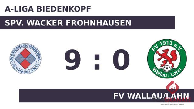 Der FV Wallau/Lahn geriet schon in der sechsten Minute in Rückstand, als Jan Niklas Heck das schnelle 1:0 für die Spv. Frohnhausen erzielte. Die nächsten beiden Treffer waren einem Mann vorbehalten: Tian Behr schnürte einen Doppelpack (8./40.), sodass die Spv. Wacker Frohnhausen fortan mit 3:0 führte. Nach dem souveränen Auftreten der Spv. Frohnhausen überraschte es kaum einen Zuschauer, dass zur Pause eine deutliche Führung stand. Die Spv. Wacker Frohnhausen konnte mit dem ersten Durchgang sehr zufrieden sein. Trotzdem gab es Veränderungen bei der Spv. Frohnhausen. Dominic Wagner ersetzte Dano Marcello Behr, der nun schon vorzeitig Feierabend machte. Für die Vorentscheidung waren Maximilian Scheld (59.) und Christian Immel (63.) mit zwei schnellen Treffern verantwortlich. In der 70. Minute stellte der FV Wallau/Lahn personell um: Per Doppelwechsel kamen Samet Güngör und Felix Leopold auf den Platz und ersetzten Lukasz Opozda und Tim-Jannik Pfeiffer. In Topform präsentierte sich Jan Schnabel, der einen lupenreinen Hattrick markierte (75./81./84.) und den Gästen einen schweren Schlag versetzte. Jan Schnabel gelang in den Schlussminuten noch ein weiterer Treffer für die Spv. Wacker Frohnhausen (87.). Schlussendlich pfiff Osman Yasar (Angelburg) das Spiel ab und das Debakel des FV Wallau/Lahn war perfekt.