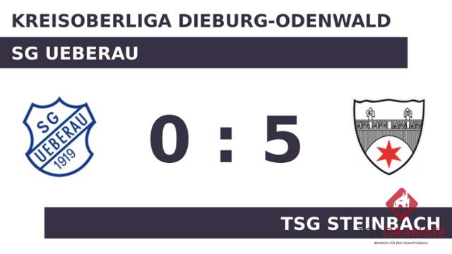 Die TSG Steinbach legte los wie die Feuerwehr und ließ durch einen Doppelschlag von Nils Bolz aufhorchen (12./14.). Für ruhige Verhältnisse sorgte Alexander Wassner, als er das 3:0 für die Gäste besorgte (15.). Benjamin Reimer vollendete zum vierten Tagestreffer in der 34. Spielminute. Die TSG Steinbach baute den Vorsprung mit der Hilfe des Gegners weiter aus: 5:0 für die TSG Steinbach durch ein Eigentor der SG Ueberau in der 35. Minute. Bis zum Schlusspfiff durch den Unparteiischen Ian Plenderleith (Frankfurt am Main) betrieb die SG Ueberau nach einem desolaten ersten Spielabschnitt in Halbzeit zwei Schadensbegrenzung und verhinderte eine noch höhere Pleite. Am Ende hieß es 5:0 zugunsten der TSG Steinbach.