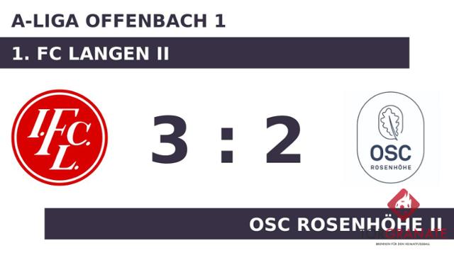 Florian Mayer brachte sein Team in der 29. Minute nach vorn. Mit der Führung für den 1. FC Langen II ging es in die Halbzeitpause. In Durchgang zwei lief Damir Cama anstelle von Nicholas Erich Schön für den OSC Rosenhöhe II auf. Beim 1. FC Langen II kam zu Beginn der zweiten Hälfte Ben Schwartz für Alexandru Bunea in die Partie. Für das 2:0 der Gastgeber zeichnete Can Demir verantwortlich (51.). Der dritte Streich des 1. FC Langen II war Schwartz vorbehalten (66.). Eine starke Leistung zeigte Mateo Cosic, der sich mit einem Doppelpack für den OSC Rosenhöhe II beim Trainer empfahl (70./87.). Die Gäste steigerten sich nach desolatem Beginn im Laufe der Partie. Unterm Strich erwies sich der Rückstand jedoch als zu groß, als dass der OSC Rosenhöhe II etwas hätte mitnehmen können.