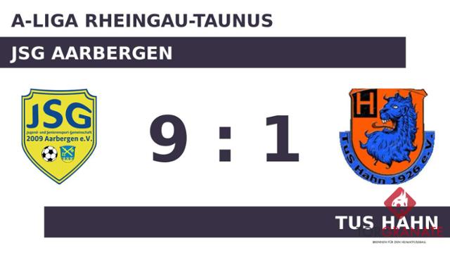 Nedim Divjan brachte die JSG Aarbergen in der 20. Minute in Front. Christian Michel trug sich in der 23. Spielminute in die Torschützenliste ein. Die JSG Aarbergen baute den Vorsprung mit der Hilfe des Gegners weiter aus: 3:0 für die JSG Aarbergen durch ein Eigentor des TuS Hahn in der 28. Minute. Dem 4:0 durch Mustafa Metovic (31.) ließen Divjan (34.) und Maurice Friedel (45.) weitere Treffer für die JSG Aarbergen folgen. Der TuS Hahn stellte in der 38. Minute mit einem Dreifachwechsel groß um und schickte Max Bodenheimer, Tim Steinhardt und Felix Kohlstadt für Dennis Kaltwasser, Felix Fischer und Tizian Girnus auf den Platz. Die Gäste sahen in Durchgang eins kein Land und lagen zur Pause unaufholbar zurück. In der Pause stellte die JSG Aarbergen personell um: Per Doppelwechsel kamen Radovan Djukovic und Simon Graf auf den Platz und ersetzten Marcel Andree und Friedel. Durch Treffer von Djukovic (57.), Divjan (67.) und Michel (75.) zog die JSG Aarbergen uneinholbar davon. In der Schlussphase gelang Kohlstadt noch der Ehrentreffer für den TuS Hahn (85.). Schlussendlich setzte sich die JSG Aarbergen mit neun Toren durch und machte bereits vor dem Seitenwechsel klar, welche Mannschaft als Sieger vom Platz gehen würde.