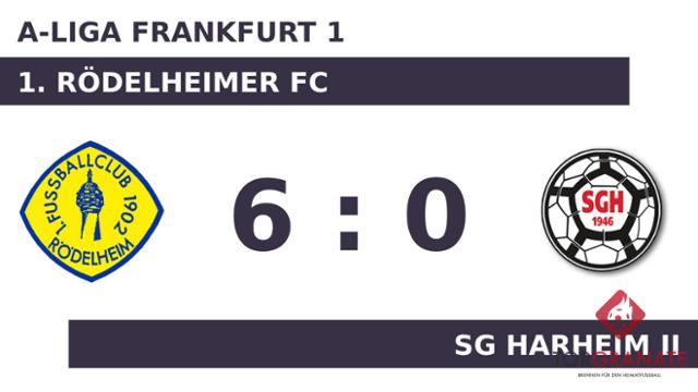 Für Noah Heddesheimer war der Einsatz nach sechs Minuten vorbei. Für ihn wurde Alexander Ulitzka eingewechselt. In der 18. Minute brachte Niklas Vogt den Ball im Netz von SG Harheim II unter. Dennis Penk versenkte die Kugel zum 2:0 für den 1. Rödelheimer FC (21.). Mit dem 3:0 durch Simon Wagner schien die Partie bereits in der 22. Minute mit dem 1. Rödelheimer FC einen sicheren Sieger zu haben. Vogt schraubte das Ergebnis in der 30. Minute mit dem 4:0 für den 1. Rödelheimer FC in die Höhe. Der 1. Rödelheimer FC hatte die Chancen genutzt und blickte zur Pause auf einen deutlichen Vorsprung. Mit einem Wechsel – Eike Otten kam für Paul Vater – startete SG Harheim II in Durchgang zwei. Benedikt Jakob überwand den gegnerischen Schlussmann zum 5:0 für den 1. Rödelheimer FC (56.). Per Elfmeter erhöhte Vogt in der 70. Minute seine Torausbeute an diesem Tag auf drei Treffer – 6:0 für den 1. Rödelheimer FC. Schlussendlich setzte sich der 1. Rödelheimer FC mit sechs Toren durch und machte bereits vor dem Seitenwechsel klar, welche Mannschaft als Sieger vom Platz gehen würde.
