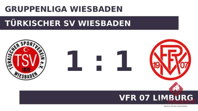 Ausgerechnet zum psychologisch ungünstigen Zeitpunkt vor der Halbzeit traf Ali Bektas für den Türkischer SV zur Führung (44.). Einen Torerfolg in Halbzeit eins verbuchten lediglich die Gastgeber, womit man eine knappe Führung mit in die Kabinen nahm. Der VFR 07 Limburg wechselte für den zweiten Durchgang: Ömer Akbulut spielte für Moritz Steul weiter. Für den Gleichstand, der kurz vor dem Ende zustande kam, zeichnete Markus Neugebauer mit seinem Treffer aus der 90. Minute verantwortlich. Schließlich gingen der Türkischer SV Wiesbaden und der VFR 07 Limburg mit einer Punkteteilung auseinander.