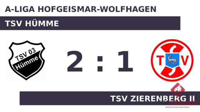 Kaum war das Spiel angepfiffen, lag der TSV Zierenberg II bereits in Front. Alexander Nierlein markierte in der dritten Minute die Führung. Noch bevor es in die Halbzeit ging, war Griffen Nuri mit dem 1:1 für den TSV Hümme zur Stelle (41.). Eine Aussage darüber, wer am Ende die Nase vorn haben würde, war nach dem Abpfiff der ersten Halbzeit noch nicht zu treffen. Es ging mit einem Gleichstand in die Kabinen. Ein später Treffer von Lucas Schneider, der in der Schlussphase erfolgreich war (90.), bedeutete die Führung für den TSV Hümme. Letzten Endes holte der TSV Hümme gegen den TSV Zierenberg II drei Zähler.