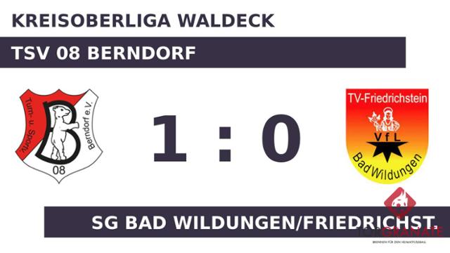 Nach den ersten 45 Minuten ging es für den TSV 08 Berndorf und Wild./Friedrichst. ohne Torerfolg in die Kabinen. Mit einem Wechsel – Robert Thomas Mitsch kam für Jonas Querl – startete der TSV Berndorf in Durchgang zwei. In der 72. Minute stellte die SG Bad Wildungen/Friedrichst. personell um: Per Doppelwechsel kamen Johannes Süring und Dennis Gruhler auf den Platz und ersetzten Norayr Jalilyan und Kai Döhring. Gefeierter Mann des Spiels war Julian Jäger, der dem TSV 08 Berndorf mit seinem Treffer in der 88. Minute den Vorsprung brachte. Am Schluss siegte der TSV Berndorf gegen Wild./Friedrichst.