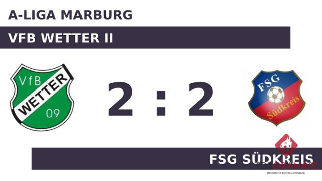 Nils Ruppel war zur Stelle und markierte das 1:0 des VfB Wetter II (17.). Timo Damm witterte seine Chance und schoss den Ball zum 1:1 für die FSG Südkreis ein (26.). Joel Boesser, der von der Bank für Siraj Ali Saleh kam, sollte für neue Impulse beim VfB Wetter II sorgen (39.). Der Schiedsrichter schickte schließlich beide Mannschaften ohne weitere Änderung am Spielstand in die Kabinen. Luca Studenroth verwandelte in der 69. Minute einen Elfmeter und brachte der FSG Südkreis die 2:1-Führung. Jetzt erst recht, dachte sich Boesser, der kurz nach dem Nackenschlag den Ausgleich parat hatte (70.). Letzten Endes gewann niemand die Oberhand, sodass sich der VfB Wetter II und die FSG Südkreis die Punkte teilten.