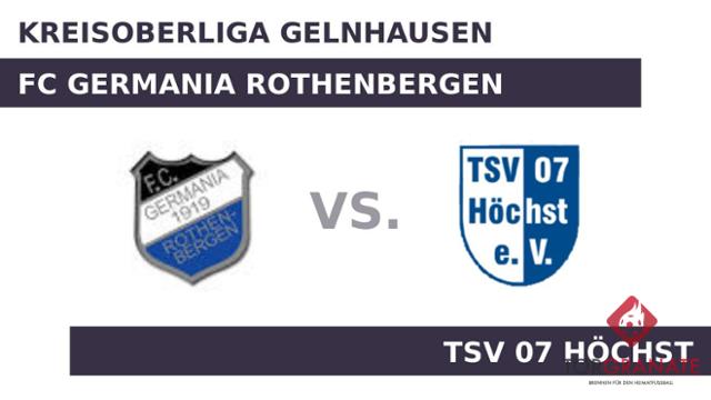 Aufpassen sollte die Germ. Rothenbergen auf die Offensivabteilung des TSV 07, die durchschnittlich mehr als dreimal pro Spiel zuschlug. In der Tabelle sind die Mannschaften in der gleichen Region unterwegs, nachdem die bisherige Saison der beiden Teams vergleichbar verlief. Fünf Niederlagen trüben die Bilanz des TSV 07 Höchst mit ansonsten zehn Siegen und einem Remis. Bisher verbuchte der FC Germania Rothenbergen zehnmal einen dreifachen Punktgewinn. Demgegenüber stehen zwei Unentschieden und vier Niederlagen. Beide Mannschaften treten mit breiter Brust an: Der FCG ist ebenso wie der TSV 07 Höchst seit sechs Spielen ungeschlagen.