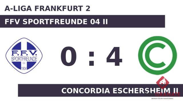 Nach nur 27 Minuten verließ Nicolas Pruessmeier von der Conc. Eschersheim II das Feld, Minh Le kam in die Partie. Der Unparteiische setzte mit dem Halbzeitpfiff dem torlosen Treiben auf dem Feld vorläufig ein Ende. Anstelle von Julius Ester war nach Wiederbeginn Len Santiago Lockl für die Concordia Eschersheim II im Spiel. Paul Groetzki brachte die Gäste in der 50. Spielminute in Führung. Wenig später kamen Abdullah Elbay und Junaid Zafar per Doppelwechsel für Ayoub Lakroum und Harjit Garha auf Seiten des FFV Sportfreunde II ins Match (52.). Die nächsten beiden Treffer waren einem Mann vorbehalten: Tobias Pruessmeier schnürte einen Doppelpack (56./83.), sodass die Conc. Eschersheim II fortan mit 3:0 führte. Ehe der Abpfiff ertönte, war es Le, der das 4:0 aus Sicht der Concordia Eschersheim II perfekt machte (90.). Letzten Endes ging die Conc. Eschersheim II im Duell mit dem FFV Sportfreunde 04 II als Sieger hervor.