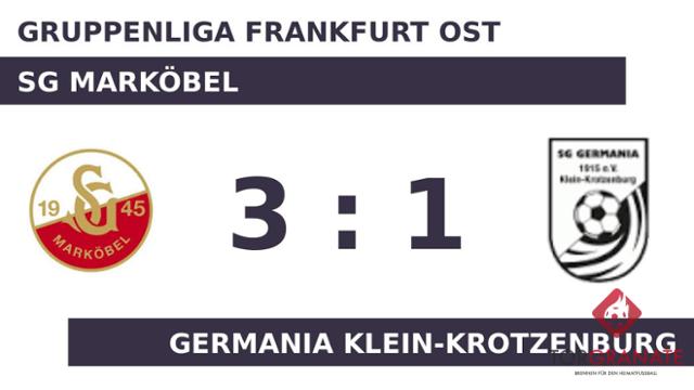 Can Kayalar brachte das Klein-Krotzenburg in der 26. Minute ins Hintertreffen. Mit einem Tor Vorsprung für die SG Marköbel ging es für die beiden Teams nach dem Pausenpfiff in die Kabinen. In der 59. Minute erzielte Niklas Kaufmann das 1:1 für die Germania Klein-Krotzenburg. Dass die SG Marköbel in der Schlussphase auf den Sieg hoffte, war das Verdienst von Julian Quantz, der in der 83. Minute zur Stelle war. Sven Wesenberg stellte wenige Minuten vor dem Schlusspfiff den Stand von 3:1 für die SGM her (90.). Kurz vor dem Ende des Spiels nahmen die Marköbeler noch einen Doppelwechsel vor, sodass Abdulraman Alali und Partick Blumenroeder für Sebastian Reuthal und Daniel Schabet weiterspielten (90.). Letztlich nahm das Klein-Krotzenburg im Kellerduell bei den Gastgebern eine bittere Niederlage hin und unterlag mit 3:1.