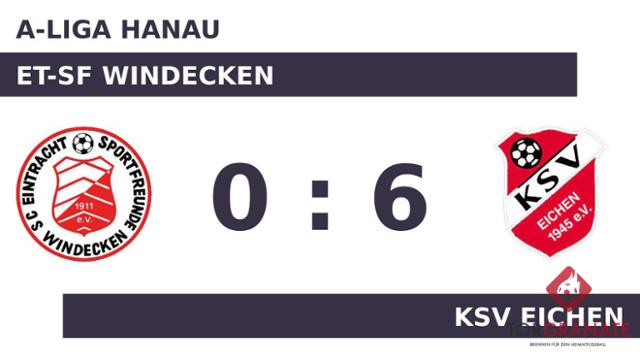 Für das erste Tor sorgte Jamie Euler. In der elften Minute traf der Spieler von KSV Eichen ins Schwarze. Patrick Vossmann musste nach nur 19 Minuten vom Platz, für ihn spielte David Bachmann weiter. Zum psychologisch ungünstigen Zeitpunkt vor der Halbzeit (45.) schoss Maximilian Stoll einen weiteren Treffer für KSV Eichen. Es waren die Gäste, die zur Pause eine Führung ihr Eigen nannten. Zum Seitenwechsel ersetzte Kai Alexander Marbeiter von der ET-SF Windecken seinen Teamkameraden Eralp Basustaoglu. Für ruhige Verhältnisse sorgte Pascal Weber, als er das 3:0 für KSV Eichen besorgte (48.). Für das 4:0 der Gäste sorgte Christoph Pollak, der in Minute 64 zur Stelle war. Den Vorsprung von KSV Eichen ließ Ion Adrian Mosila in der 72. Minute anwachsen. Constantin-Daniel Cenusa stellte schließlich in der 85. Minute den 6:0-Sieg für KSV Eichen sicher. KSV Eichen überrannte die ET-SF Windecken förmlich mit sechs Toren und fährt so mit einem verdienten Sieg in der Tasche nach Hause.