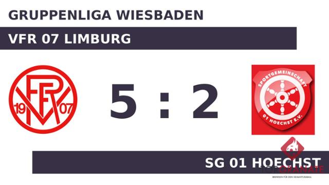 Kaum war das Spiel angepfiffen, lagen die Gastgeber bereits in Front. Till Nierfeld markierte in der fünften Minute die Führung. Für das erste Tor der SG 01 Hoechst war Ahmet Gök verantwortlich, der in der 17. Minute das 1:1 besorgte. Leon Gering stellte die Weichen für den VFR 07 Limburg auf Sieg, als er in Minute 20 mit dem 2:1 zur Stelle war. Matthias Neugebauer trug sich in der 36. Spielminute in die Torschützenliste ein. Daniel Minn beförderte das Leder zum 2:3 der SG 01 Hoechst in die Maschen (38.). Der VFR 07 Limburg nahm die knappe Führung mit in die Kabine. Beim VFR 07 Limburg kam zu Beginn der zweiten Hälfte Lucas König für Andre Nemirowitsch in die Partie. Gering schnürte mit seinem zweiten Treffer einen Doppelpack und brachte seine Mannschaft auf die Siegerstraße (49.). König besorgte in der Schlussphase schließlich den fünften Treffer für den VFR 07 Limburg (73.). Wenig später kamen Patrick Malicha und Ömer Akbulut per Doppelwechsel für Nierfeld und Niclas Janke auf Seiten des VFR 07 Limburg ins Match (75.). Letztlich hat die SG 01 Hoechst den Befreiungsschlag klar verpasst. Gegen den direkten Widersacher um den Klassenverbleib, den VFR 07 Limburg, bekam man das Fell über die Ohren gezogen.