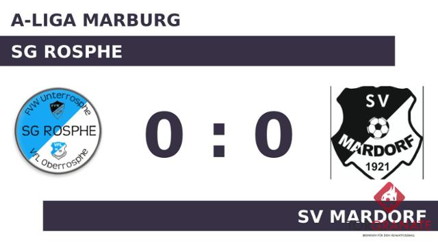 Im ersten Durchgang tasteten sich die beiden Mannschaften lediglich ab, Tore gab es nicht zu verzeichnen. Nachdem auch die zweite Hälfte ohne Tore verstrichen war, trennten sich die SG Rosphe und der SV Mardorf schließlich mit einem torlosen Unentschieden.