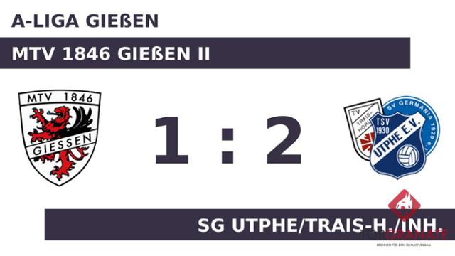 Jannis-Luca Büttel brachte sein Team in der 18. Minute nach vorn. Bis zur Pause fiel kein weiteres Tor, sodass das Utphe/Trais-H./Inh. mit einer Führung in die Kabine ging. In der 68. Minute stellte der MTV 1846 Gießen II personell um: Per Doppelwechsel kamen Jannik Banholzer und Jan Spiegl auf den Platz und ersetzten Joshua Zaborowski und Nils Dreßler. Wenig später verwandelte David Böhm einen Elfmeter zum 1:1 zugunsten des Gastgebers (74.). Dass die SG Utphe/Trais-H./Inh. in der Schlussphase auf den Sieg hoffte, war das Verdienst von Louis Jonathan Hilse, der in der 78. Minute zur Stelle war. Die 1:2-Heimniederlage des MTV 1846 Gießen II war Realität, als Referee Sükrü Yüksel Firat (Lollar) die Partie letztendlich abpfiff.