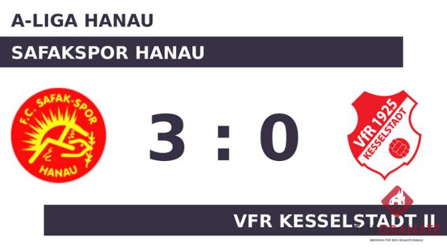 K.A. k.A. brachte das Safakspor Hanau in der 20. Minute nach vorn. Ohne dass sich am Stand noch etwas geändert hatte, verabschiedeten sich beide Mannschaften zur Pause in die Kabinen. Maurizio Oronzo Cerasino glänzte an diesem Tag besonders. Er traf im Doppelpack für das Safakspor Hanau (50./70.). Am Schluss schlug das Safakspor Hanau den VfR Kesselstadt II mit 3:0.