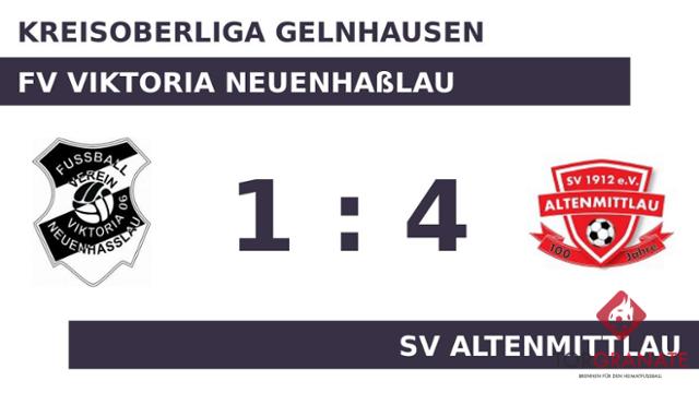 Der FVV geriet schon in der neunten Minute in Rückstand, als Gian-Luca Marucci das schnelle 1:0 für den SV Altenmittlau erzielte. Ein frühes Ende hatte das Spiel für Patrick Dorazio Salamanca von der Vikt. Neuenhaßlau, der in der 13. Minute vom Platz musste und von Tom Bassermann ersetzt wurde. Zum psychologisch ungünstigen Zeitpunkt vor der Halbzeit (45.) schoss Tim Schloegl einen weiteren Treffer für den SV Altenmittlau. Es waren die Gäste, die zur Pause eine Führung ihr Eigen nannten. Phil Schneider legte in der 77. Minute zum 3:0 für den SV Altenmittlau nach. In der 88. Minute brachte Amanuel Dawit Semere das Netz für den FV Viktoria Neuenhaßlau zum Zappeln. Für ruhige Verhältnisse sorgte Robin Fruewacht, als er das 4:1 für den SV Altenmittlau besorgte (90.). Letztlich hat die Vikt. Neuenhaßlau den Befreiungsschlag klar verpasst. Gegen den direkten Widersacher um den Klassenverbleib, den SVA, bekam man das Fell über die Ohren gezogen.