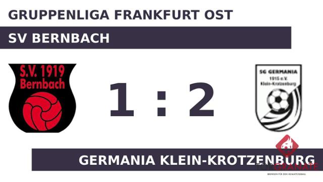 Beim SV Bernbach kam zu Beginn der zweiten Hälfte Matteo Del Grosso für Alvin Rama in die Partie. Der Unparteiische setzte mit dem Halbzeitpfiff dem torlosen Treiben auf dem Feld vorläufig ein Ende. Mit einem Wechsel – Niklas Kaufmann kam für Kaan Seker – startete das Klein-Krotzenburg in Durchgang zwei. Lange Zeit hielten beide Mannschaften hinten die Null. Das änderte sich, als Florian Franz mit seinem Treffer für den SV Bernbach die turbulente Schlussphase einläutete (77.). Für das 1:1 der Germania Klein-Krotzenburg zeichnete Andrej Kolchak verantwortlich (84.). Die spielentscheidende Rolle nahm Rafael Garrido Yu ein, der kurz vor knapp für die Sportgemeinschaft zum Führungstreffer bereitstand (88.). Letztlich nahmen die Germanen gegen den direkten Abstiegskonkurrenten wichtige Punkte mit und trugen einen Sieg davon.