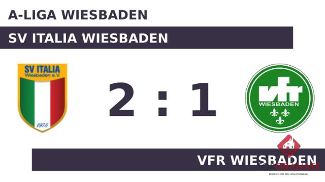 Nach den ersten 45 Minuten ging es für den SV Italia Wiesbaden und den VfR Wiesbaden ohne Torerfolg in die Kabinen. Durch einen Elfmeter von Eldin Avdija gelang dem SV Italia Wiesbaden das Führungstor. Samir Kurtesi schoss für den VfR Wiesbaden in der 83. Minute das erste Tor. Gefeierter Mann des Spiels war Avdija, der dem SV Italia Wiesbaden mit seinem Treffer in der 90. Minute den Vorsprung brachte. Letzten Endes holte der SV Italia Wiesbaden gegen den VfR Wiesbaden drei Zähler.