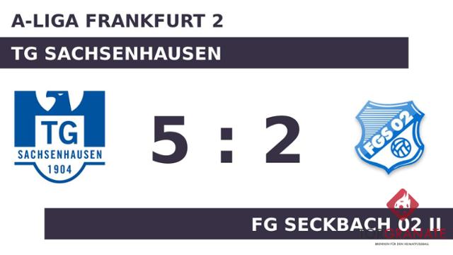Dominik Curkovic brachte die TG Sachsenhausen in der siebten Minute ins Hintertreffen. Die Heimmannschaft zeigte sich wenig beeindruckt. In der zehnten Minute schlug Niklas Wölm mit dem Ausgleich zurück. David Bühler sorgte mit einem lupenreinen Hattrick für das 4:1 (27./30./45.) aus der Perspektive der TG Sachsenhausen. Die TG Sachsenhausen dominierte den Gegner zur Pause nach Belieben und ging mit einer deutlichen Führung in die Kabine. Zum Seitenwechsel ersetzte Robel Gabrihitwet von der FG Seckbach 02 II seinen Teamkameraden Nunzio Milicia. Für das 2:4 der Gäste zeichnete Gabrihitwet verantwortlich (83.). Per Elfmeter erhöhte Bühler in der 88. Minute seine Torausbeute an diesem Tag auf vier Treffer – 5:2 für die TG Sachsenhausen. Letztlich fuhr die TG Sachsenhausen einen souveränen Erfolg ein, dessen Grundstein im ersten Spielabschnitt gelegt worden war.