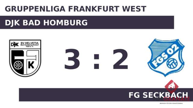 Amir Reza Chasebi Mamoori brachte die DJK Bad Homburg in der 18. Minute ins Hintertreffen. Mit einem Wechsel – Jonas Hess kam für Christoph Lange – startete die FG Seckbach in Durchgang zwei. Im ersten Durchgang hatte die FGS etwas mehr Zug zum Tor und ging mit einem knappen Vorsprung in die Kabine. Imran Barkok war es, der in der 57. Minute den Ball im Tor der Seckbacher unterbrachte. Wer glaubte, die Fußball-Gesellschaft 02 sei geschockt, irrte. Jonas Scheitza machte unmittelbar nach dem Rückschlag den Ausgleich perfekt (65.). Abdelrahman El-Saba machte in der 65. Minute das 2:1 der DJK Bad Homburg perfekt. Wenig später kamen Roberto Martins Pereira und Adrian Augustincic per Doppelwechsel für El-Saba und Adam El Maimouni auf Seiten der Bad Homburger ins Match (73.). Dass die Helvetia in der Schlussphase auf den Sieg hoffte, war das Verdienst von Julian Marc Paul, der in der 78. Minute zur Stelle war. Schließlich holte die DJK gegen den direkten Abstiegskonkurrenten die Big Points und feierte einen 3:2-Sieg.