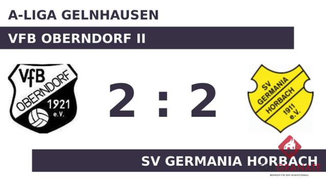 Aaron Roeder brachte sein Team in der achten Minute nach vorn. Die Pausenführung der Reserve des VFB Oberndorf fiel knapp aus. In der Halbzeit nahm der SV Germania Horbach gleich zwei Wechsel vor. Fortan standen Niklas Schnitzer und Sascha Popiolek für Jonas Koch und Luca Maselli auf dem Platz. Mit einem Wechsel – Sebastian Marcic kam für Michel Sachs – startete der VFB Oberndorf II in Durchgang zwei. Julian Walz beförderte das Leder zum 2:0 der VFB-Reserve über die Linie (62.). Manuel Stadler schlug doppelt zu und glich damit für den SV Germania Horbach aus (71./90.). Alles sprach für einen Sieg des VFB Oberndorf II, doch am Ende wurde das Aufbäumen des SV Germania Horbach noch belohnt, und die Teams trennten sich mit einem Remis voneinander.
