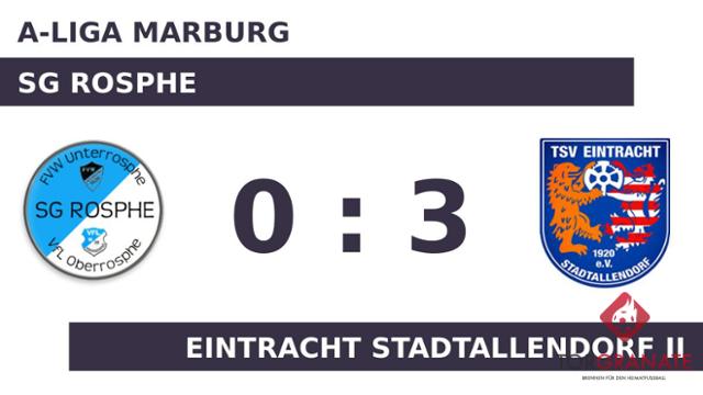 Diego Gioacchino Lamm brachte die Eintracht Stadtallendorf II in der 16. Minute nach vorn. Den Unterschied zwischen den beiden Mannschaften machte bis zur Pause lediglich ein Treffer aus, den die Gäste für sich beanspruchten. Mit einem Wechsel – Alexander Schmidt kam für Alexandru Despa – startete die SG Rosphe in Durchgang zwei. Die nächsten beiden Treffer waren einem Mann vorbehalten: Finn Ristic schnürte einen Doppelpack (52./63.), sodass der TSV Eintracht II fortan mit 3:0 führte. Die 0:3-Heimniederlage der SG Rosphe war Realität, als Schiedsrichter Ahmet Karakus (Obertshausen) die Partie letztendlich abpfiff.