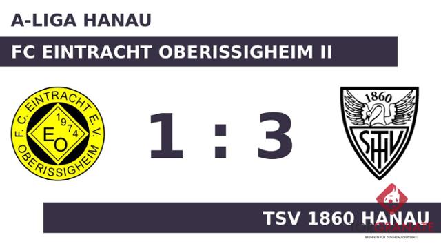 Ausgerechnet zum psychologisch ungünstigen Zeitpunkt vor der Halbzeit traf Kerem Kaya für den TSV 1860 Hanau zur Führung (42.). Der TSV 1860 Hanau führte zur Halbzeit knapp mit einem Tor Vorsprung. Wenig später kamen Florian Fuß und Fabian Reichert per Doppelwechsel für Matthew Frech und Marc Hoentsch auf Seiten des Oberissigheim II ins Match (76.). Leon Trautermann sicherte dem Heimteam nach 76 Minuten den Ausgleich durch einen Elfmeter. Die nächsten beiden Treffer waren einem Mann vorbehalten: Okan Tastan schnürte einen Doppelpack (78./86.), sodass der TSV 1860 Hanau fortan mit 3:1 führte. Mit Ablauf der Spielzeit schlug der TSV 1860 Hanau den FC Eintracht Oberissigheim II 3:1.