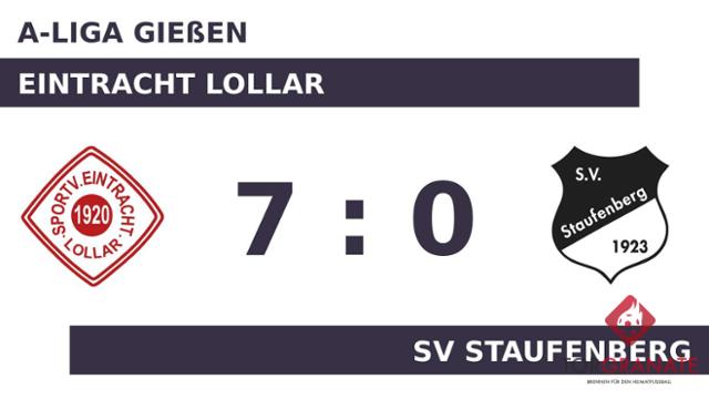 Für das erste Tor sorgte Paul Mittnacht. In der 21. Minute traf der Spieler des Heimteams ins Schwarze. Christian Hehn schoss die Kugel zum 2:0 für die Eintracht Lollar über die Linie (38.). Mit der Führung für die Eintracht Lollar ging es in die Kabine. In der 53. Minute legte Ishak Akdeniz zum 3:0 zugunsten der Eintracht Lollar nach. Dass es ein ungleiches Duell war, demonstrierten Haydar Kilic (57.), Mittnacht (59.) und Max Winterhoff (69.), die weitere Treffer für die Eintracht Lollar folgen ließen. Karahan Aydin schraubte das Ergebnis in der 73. Minute mit dem 7:0 für die Eintracht Lollar in die Höhe. Letztlich feierte die Eintracht Lollar gegen den SV Staufenberg nach einer überzeugenden Darbietung einen verdienten 7:0-Heimsieg.