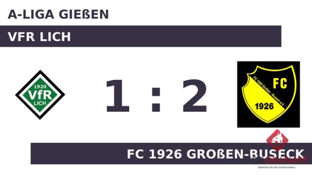 Ausgerechnet zum psychologisch ungünstigen Zeitpunkt vor der Halbzeit traf Fabrizio Golze für den FC Großen-Buseck zur Führung (45.). Die Gäste führten zur Halbzeit knapp mit einem Tor Vorsprung. Das 1:1 des VfR Lich stellte Jannik Joerg sicher (72.). Das Spiel neigte sich seinem Ende entgegen, als Golze den entscheidenden Führungstreffer für den FC 1926 Großen-Buseck erzielte (85.). Am Ende verbuchte der FC Großen-Buseck gegen den VfR Lich die maximale Punkteausbeute.